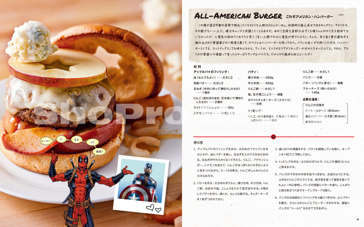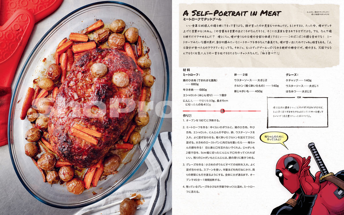 メインや副菜、デザート、そして「デッドプール」の好物”チミチャンガ”など「デッドプール」らしいレシピが多数収録されています。