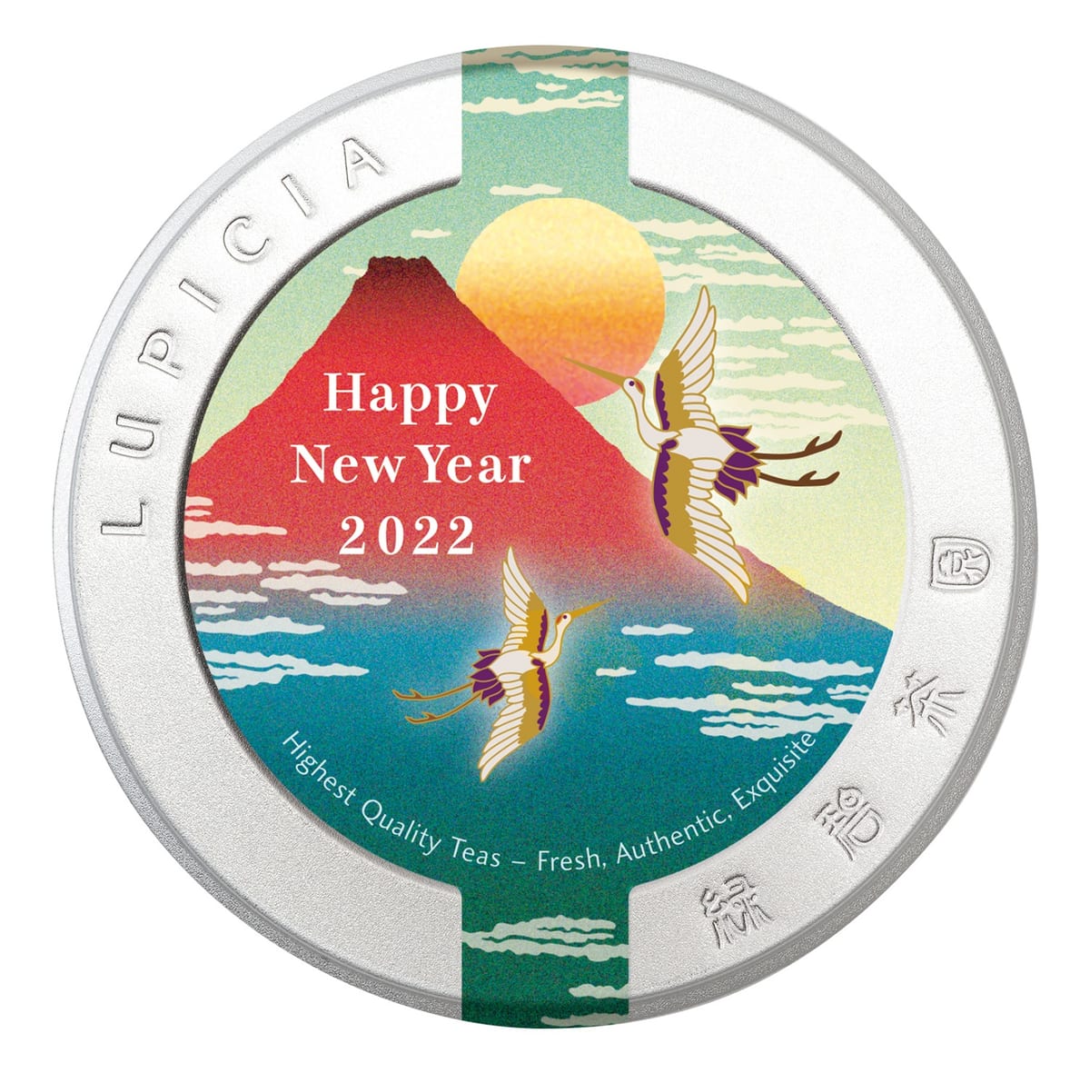 おめでたい赤富士が描かれた、ラベル缶入りの新年にふさわしい一品は、プレゼントにも喜ばれそう。