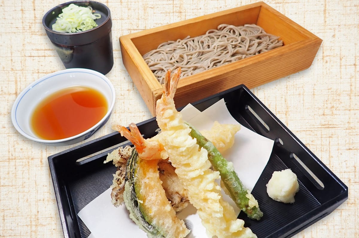 よろずや 十五夜 和マルシェ「松前大とろ鯖寿司/海老天そば」