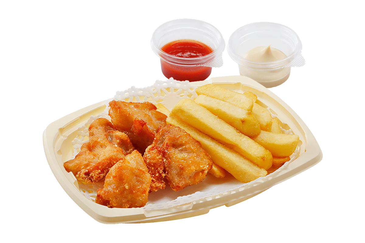 人気のフライドポテトと、びっくりドンキー風にアレンジされた北海道のザンギをセットにしたアラカルトメニュー。