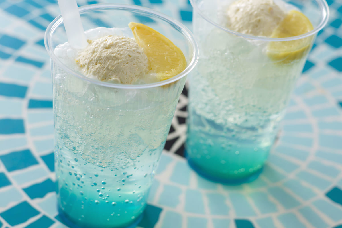 爽やかなブルーのグラデーションが楽しめる炭酸飲料「スパークリングドリンク(レモン&ホイップ)」