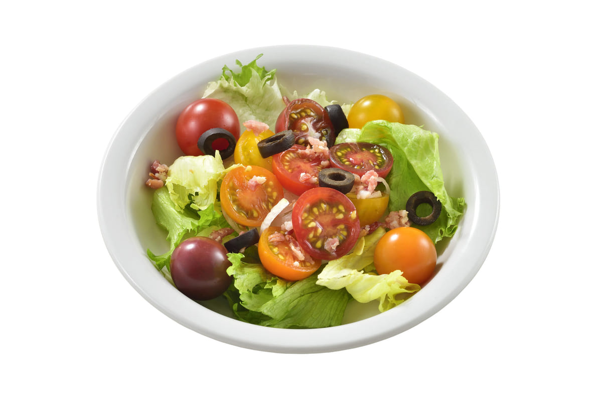 ミニトマトとレタスを使ったカラフルな生野菜サラダ。