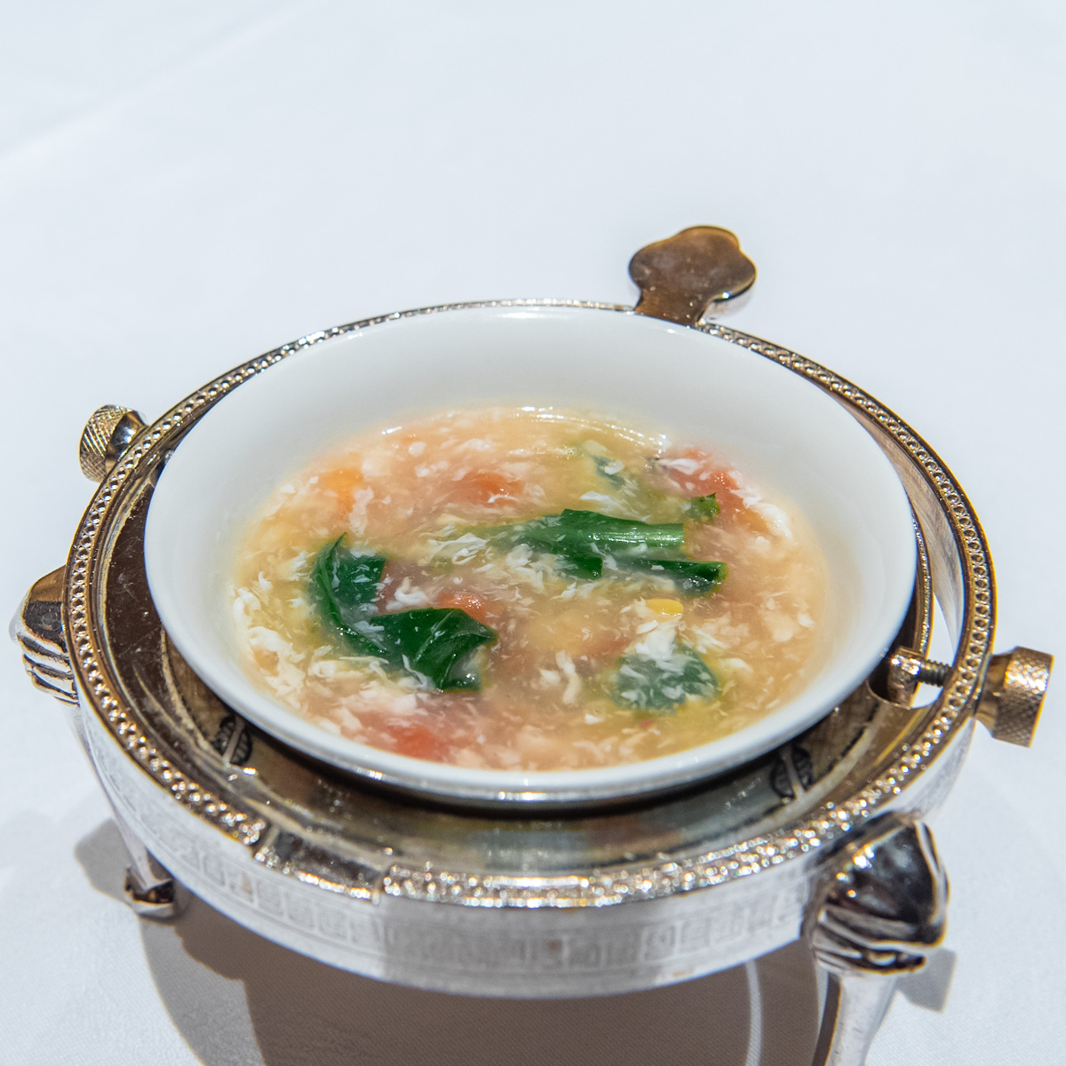 「浅蜊とトマトのスープ」は、ふわふわとした卵白ととろみが特徴的なスープ。