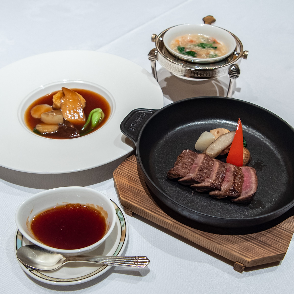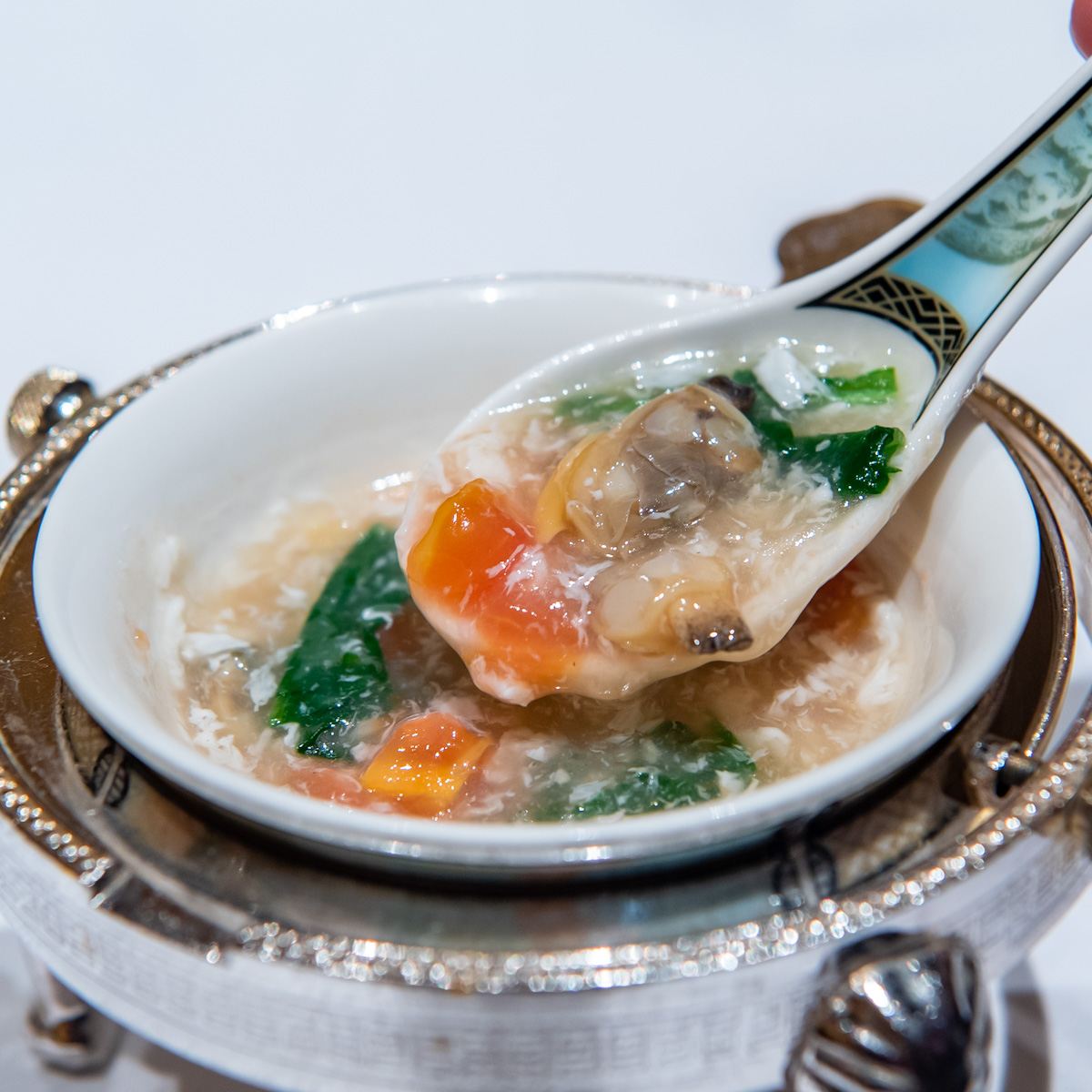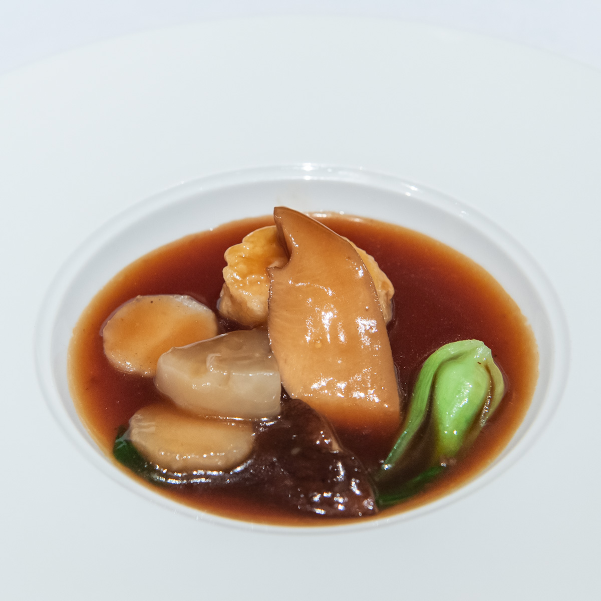 「鮑と帆立貝の紹興酒と鎮江酢煮込み」は、やわらかく煮込んだ鮑と帆立貝の歯切れのよいトロっとした食感違いを感じながらいただける一品。