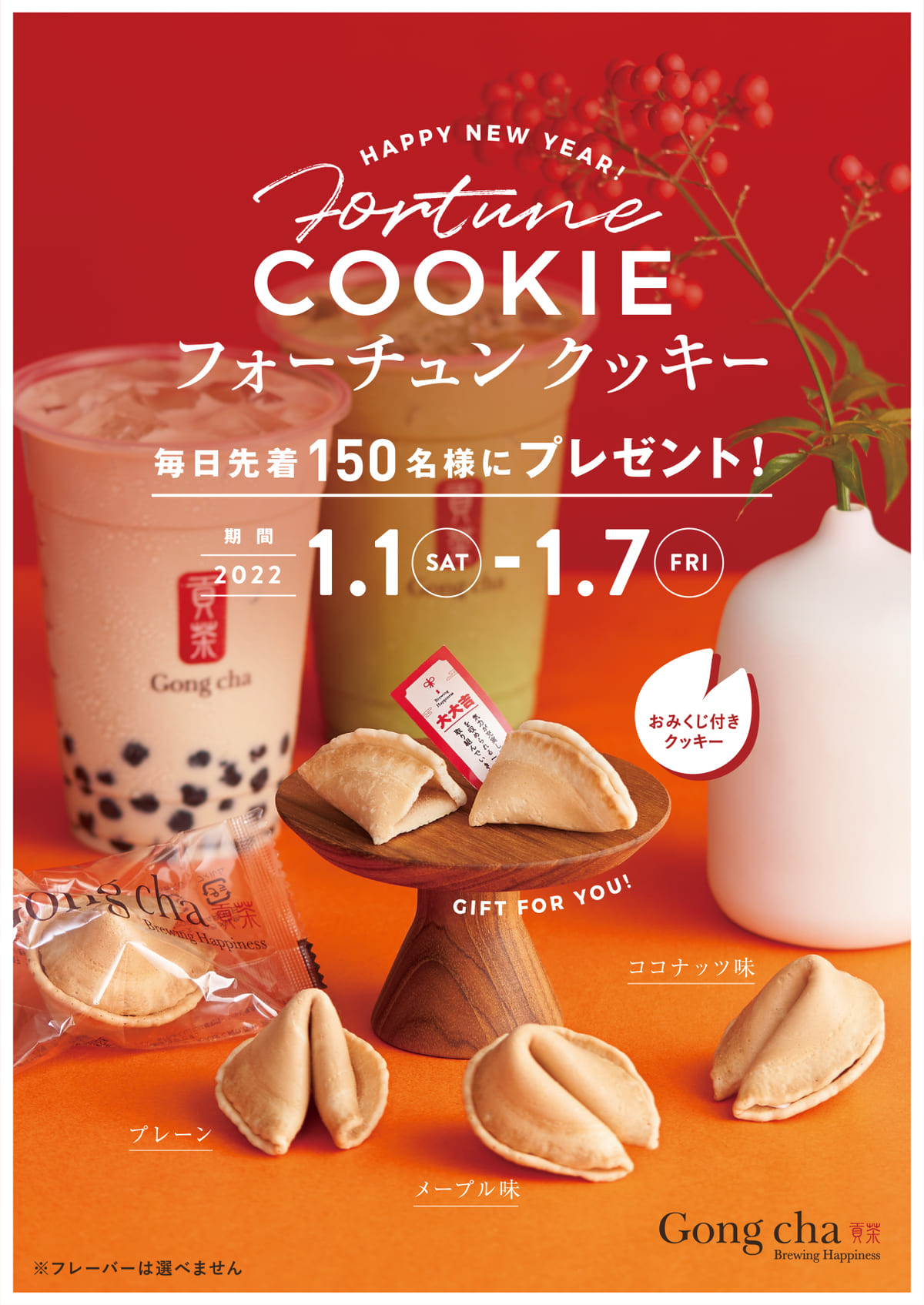 台湾発祥のティーカフェ「ゴンチャ」にて、2022年1月1日(土)から7日(金)までの期間、オリジナル「フォーチュン クッキー」をプレゼント!