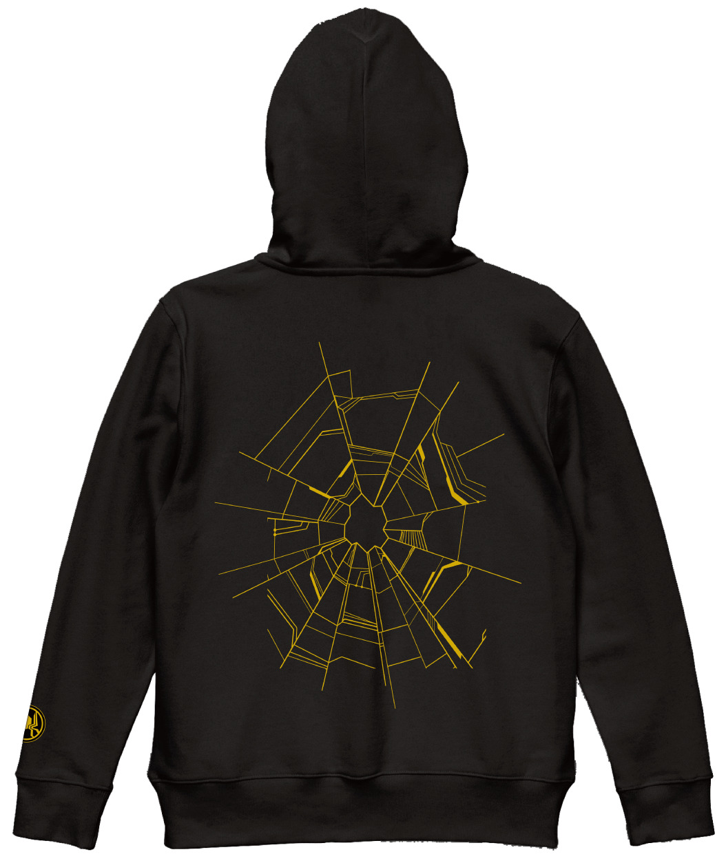TYPE-Bの背中には、ブラックに映えるイエローカラーでクモの巣がデザイン。