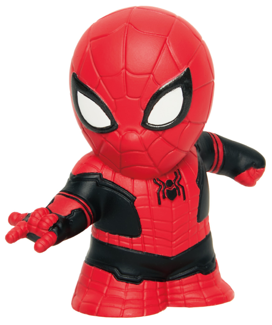 手首のウェブ・シューターを構えたポージングで、レッド×ブラックのコントラストがかっこいいフィンガーパペットです。