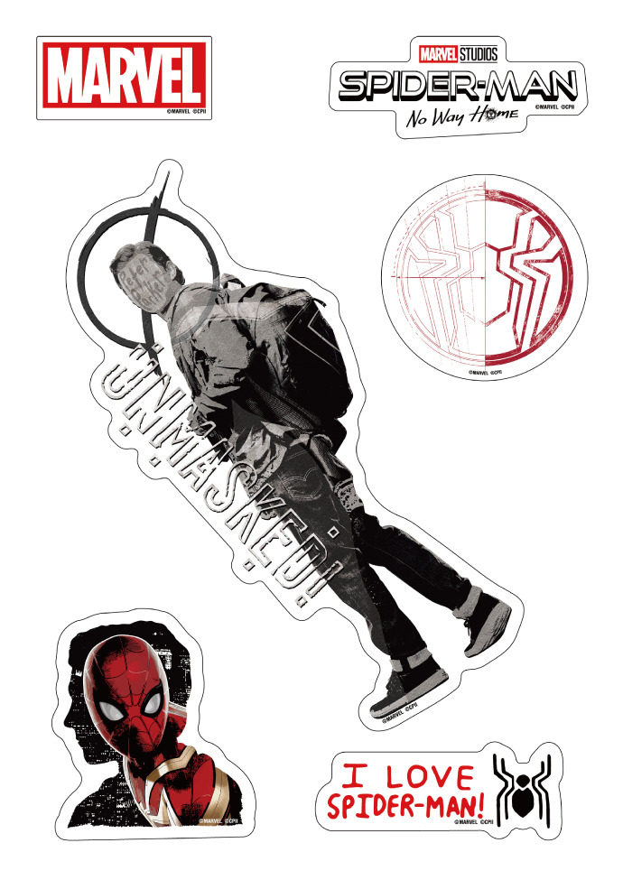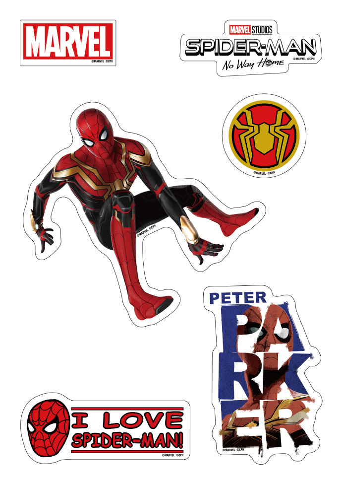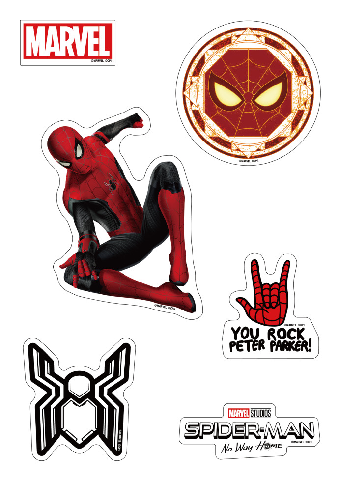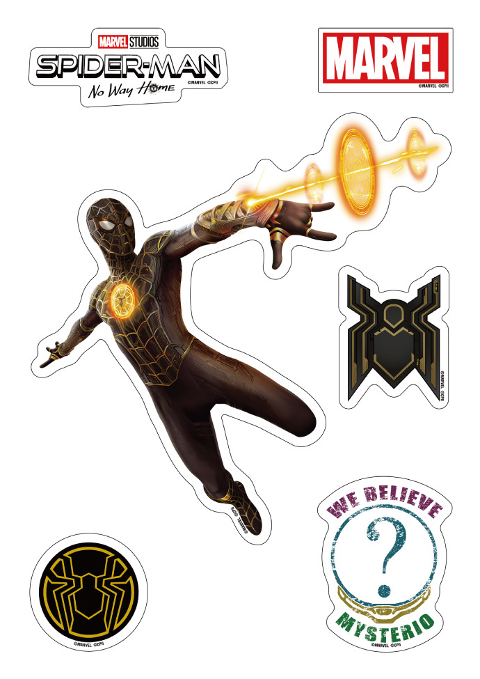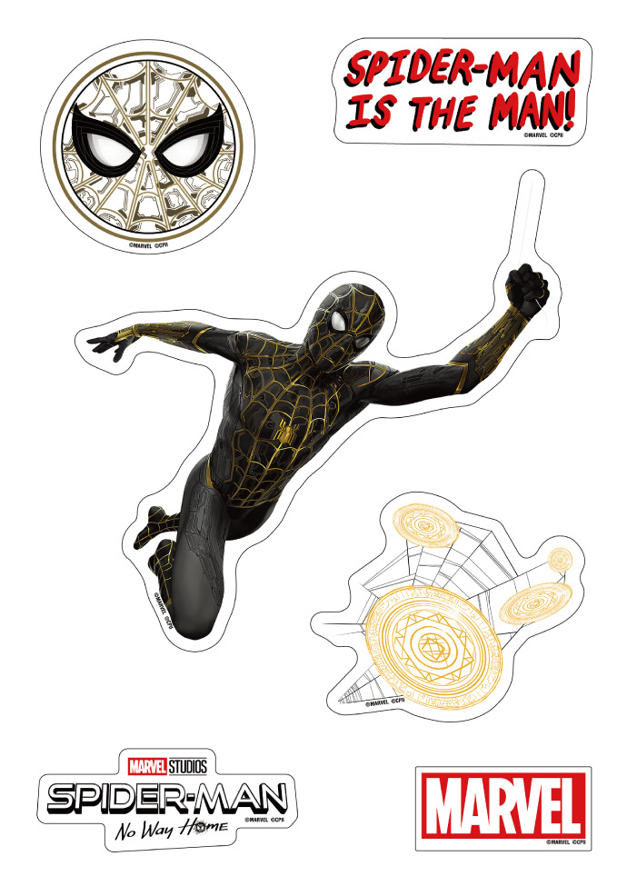 TYPE-Aは「インテグレーテッドスーツ」、TYPE-Bは「ブラック&ゴールドスーツ」の「スパイダーマン」と各種ロゴが入ったステッカーシート。