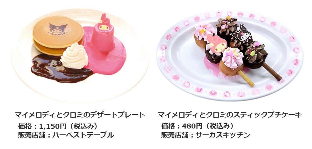 マイメロディとクロミのデザートプレート(写真左)/マイメロディとクロミのスティックプチケーキ(写真右)