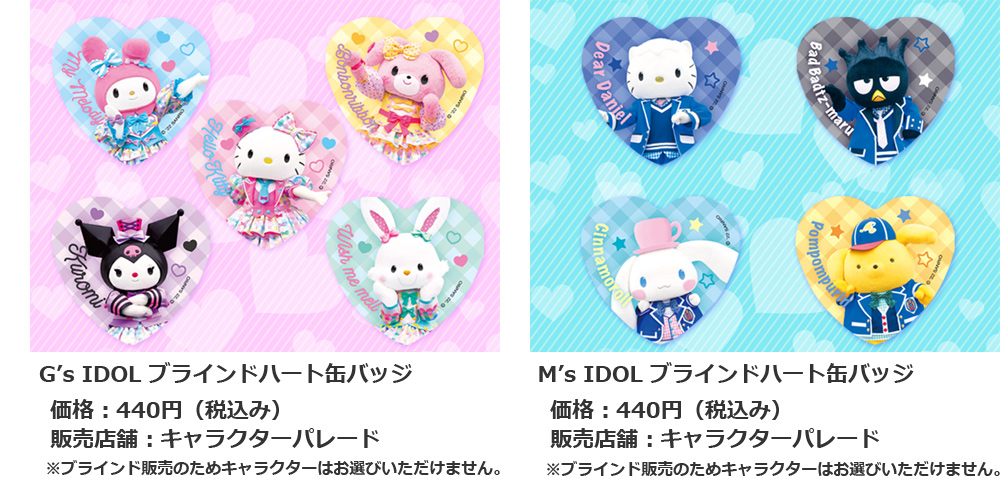 「G's IDOL」と「M's IDOL」の新グッズには、ハートの缶バッジも登場します!