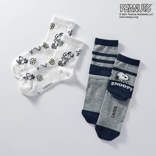 「スヌーピー」がさりげなく足もとをおしゃれにしてくれる、2足組ソックス!
