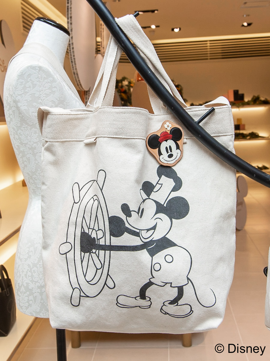 「ミッキーマウス」のシルエットをあしらい、ミッキーカラーに仕上げたバッグも、一つ一つ丁寧な手仕事によって作られています。
