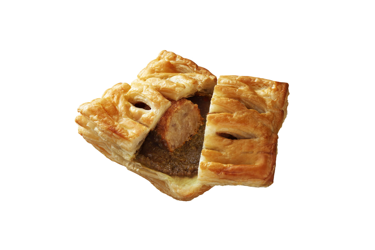 パイ生地の中にカレーフィリングとメンチカツを包み、サクサクに焼き上げたメンチカツカレーパイ。