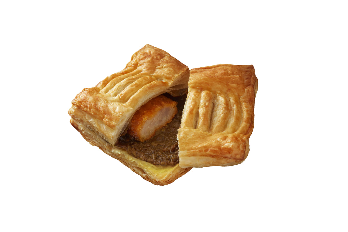 “りんご果汁とハチミツを使用したカレー” と “スパイシーで深みのあるカレー” を組み合わせたカレーをイメージした、こだわりのフィリングにコロッケ(メンチカツ)を乗せてパイ生地で包み、サクサクに焼き上げた一品です。