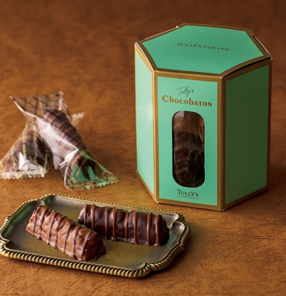 「チョコバトン」は、上品なグリーンとゴールドのボックス、または本日のコーヒー(S)とのセットで販売。