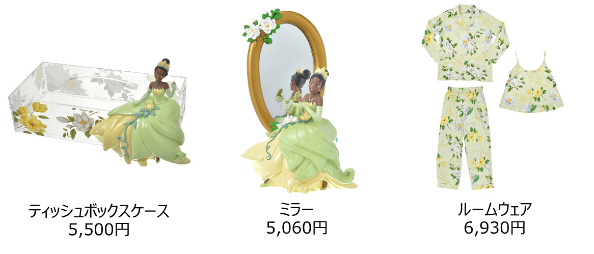 『プリンセスと魔法のキス』の「ティアナ」と、『美女と野獣』の「ベル」のデザインおうちを華やかに彩るライフスタイル雑貨などが展開されます☆