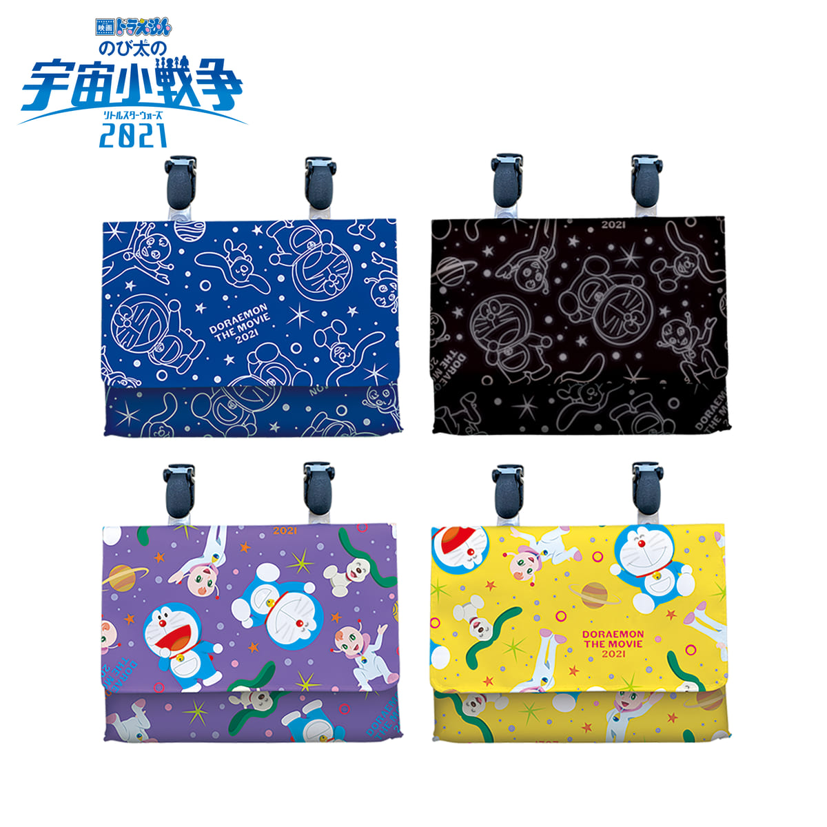 『映画ドラえもん2021』デザインの、服につけられるクリップが付いたポーチ。
