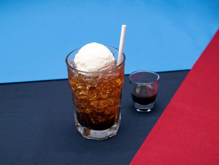 クランベリーソーダにバニラアイスをのせたドリンクです!
