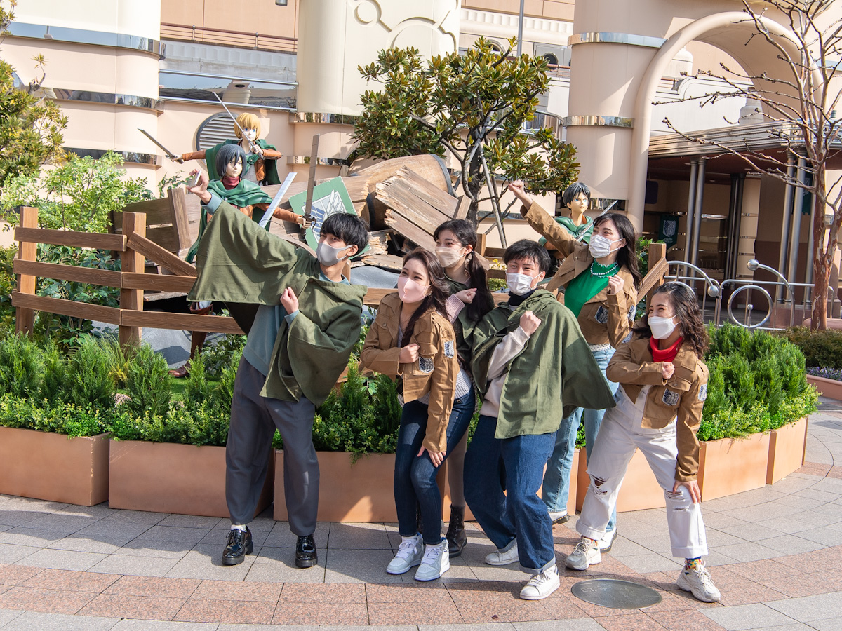 調査兵団になりきれるマントや立体機動装置などのグッズを身につけて写真を撮るのがおすすめです。