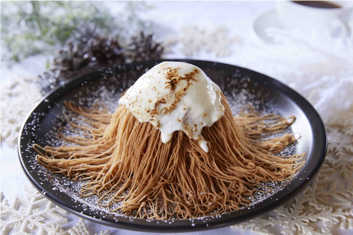 とろけるマスカルポーネや粉雪のようなシュガーをトッピングして白銀の世界を演出した、大人気モンブランの期間限定メニュー。