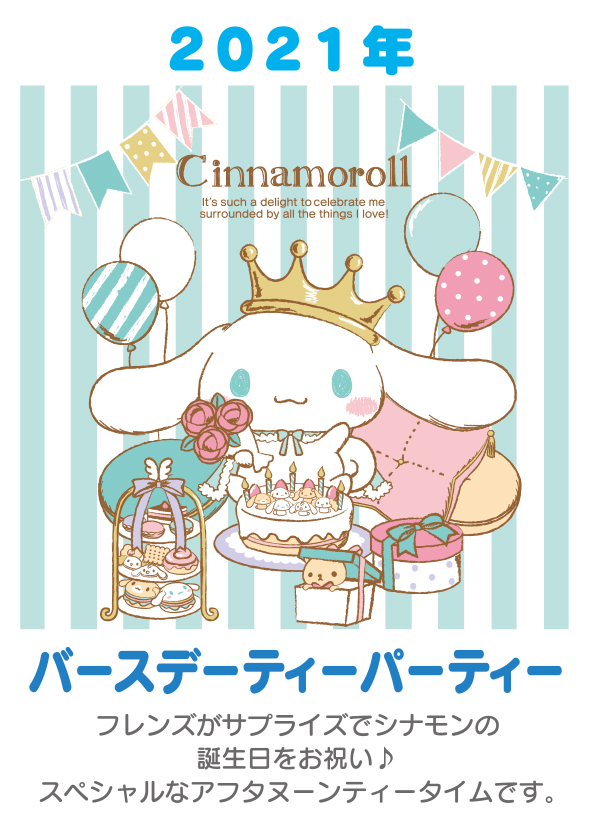 3月にはバースデーを記念した商品シリーズや「シナモロール20thアニバーサリーショップ」限定のぬいぐるみ、マスコットブローチ、シークレットピンズ、トートバックなどが登場する予定です☆