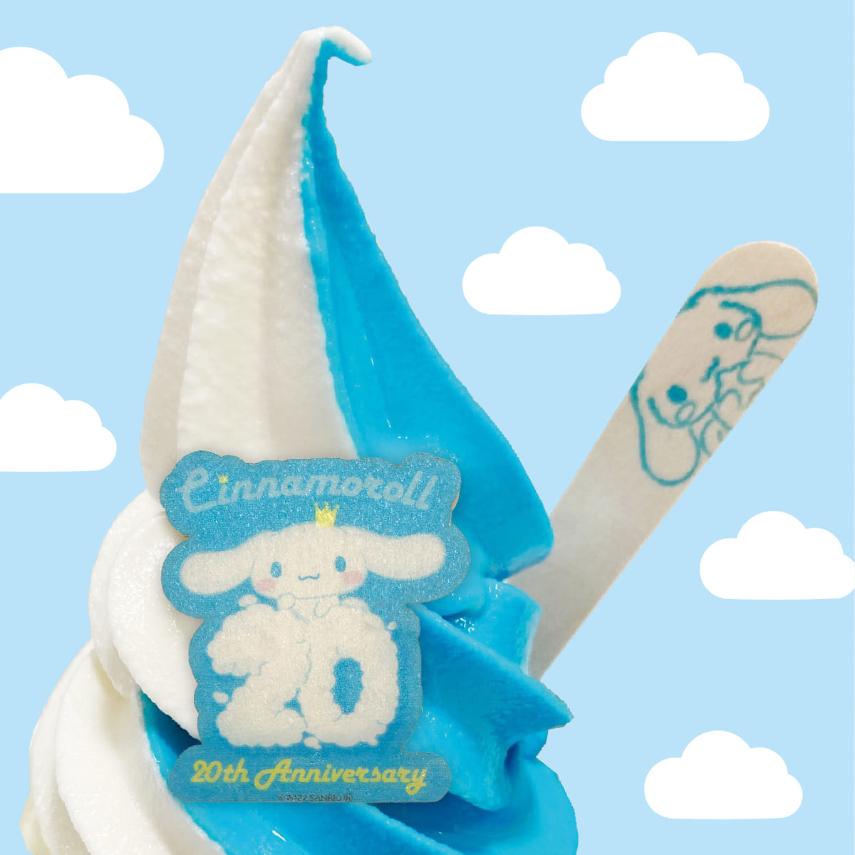 20周年キービジュアルのモナカが付いた、ミルク味のソフトクリームが「シナモロール20thアニバーサリーショップ」限定で登場!