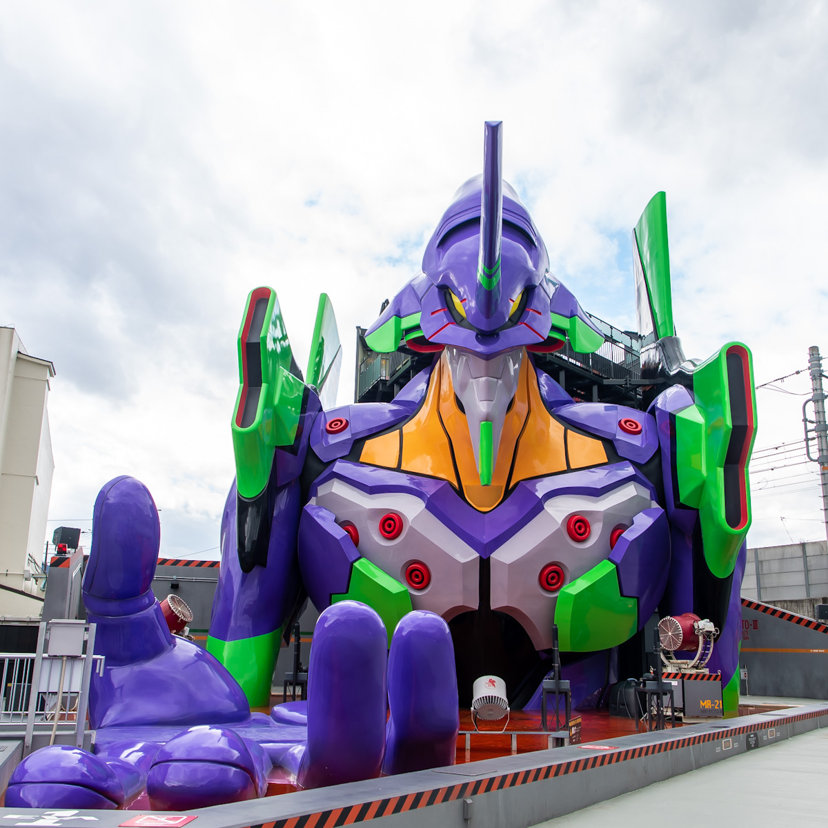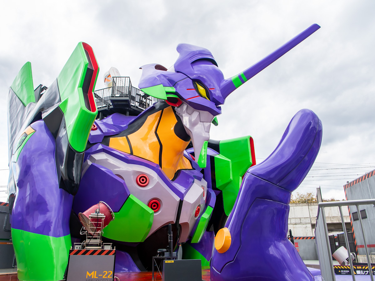 「エヴァンゲリオン京都基地」のシンボル、エヴァンゲリオン初号機。