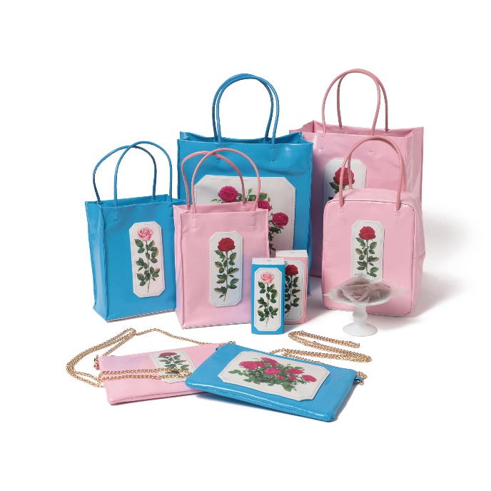 「ルル メリー」の商品に使用されているアイコニックな花のイラストをあしらったバッグやポシェットなどがラインナップ。