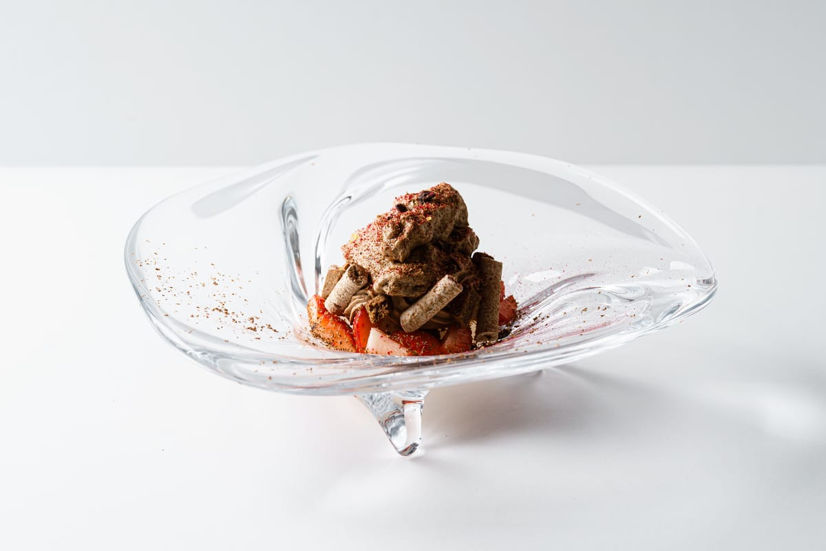 カカオハンター※のチョコレートが持つアロマを最大限に引き出しながら、ベルガモットジュレや華やかなアールグレイで幾重にも香りを重ねることで、スフレとアイスの異なる食感が融合。