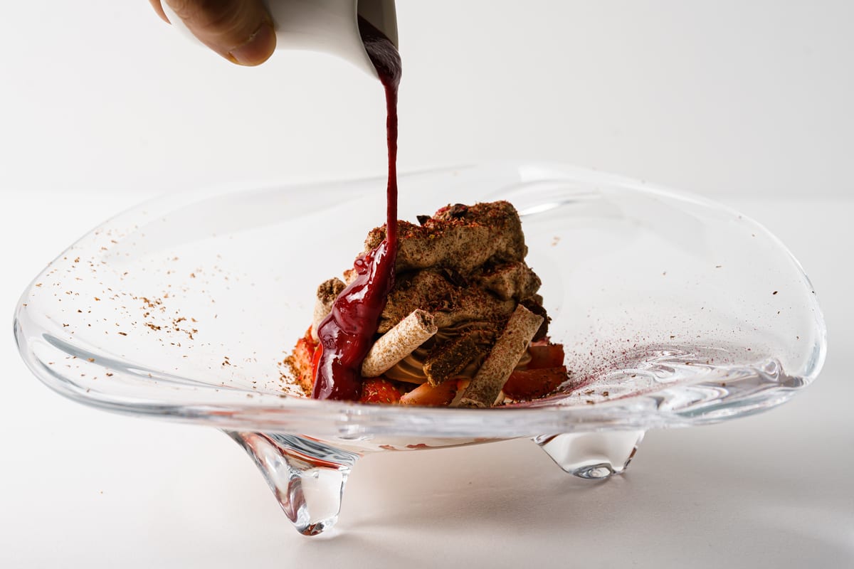仕上げに木苺のソースをとろりとかければ、極上の一品が楽しめます。