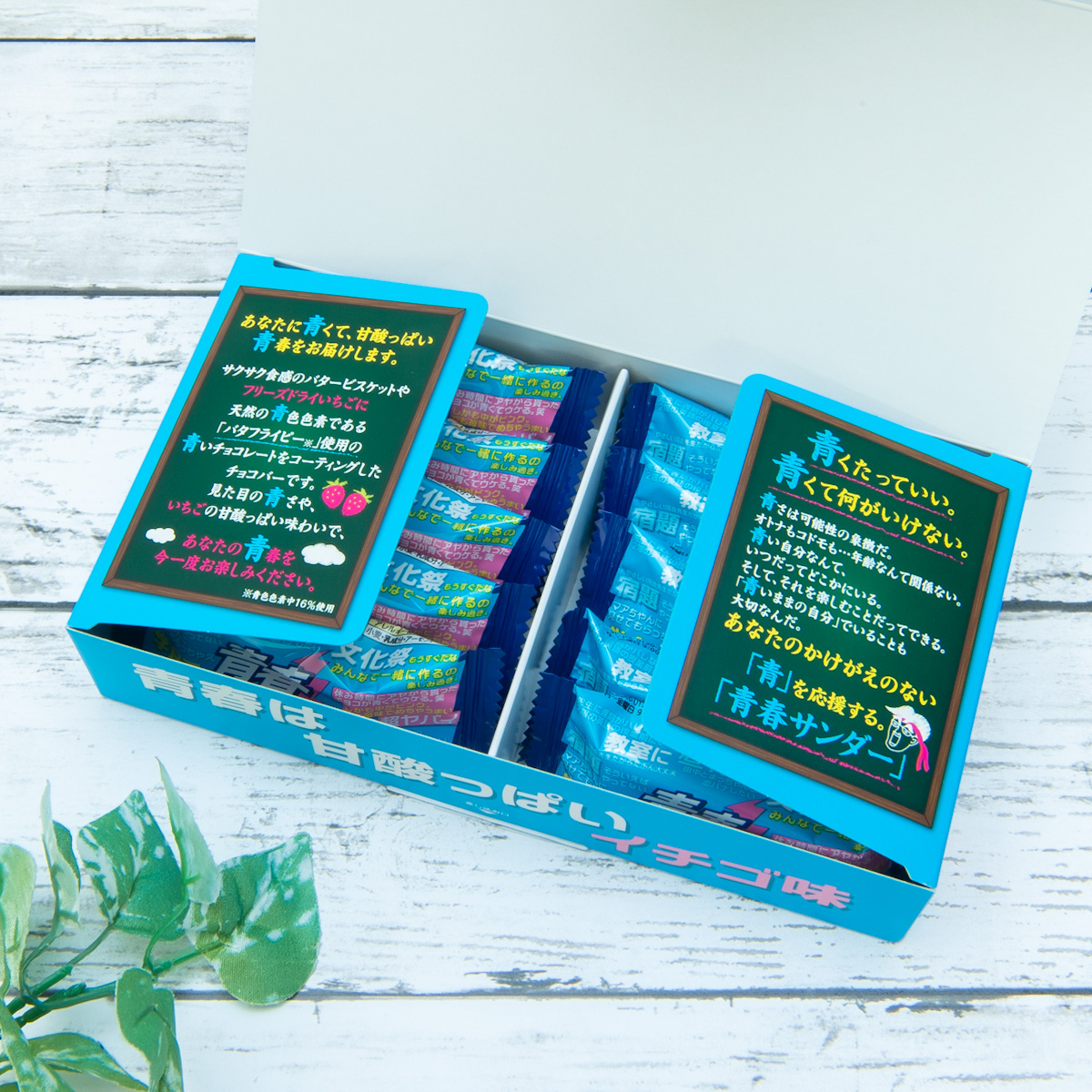 ブルーをベースにした個包装にも、青春をイメージさせるワードをプリント。