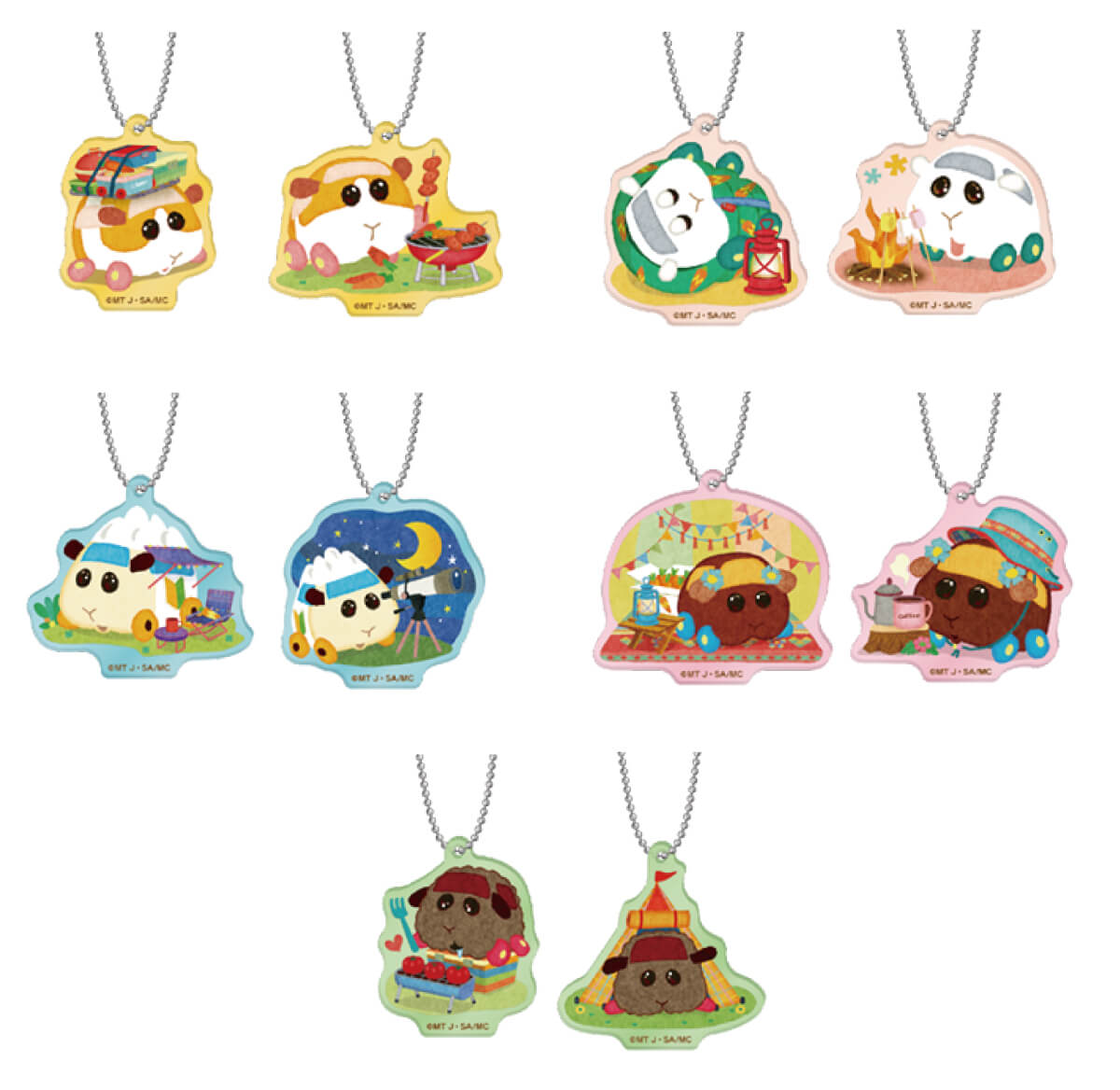 「ポテト」「シロモ」「アビー」「チョコ」「テディ」各2種、合計10種のラインナップで、アクリルキーホルダーが登場。