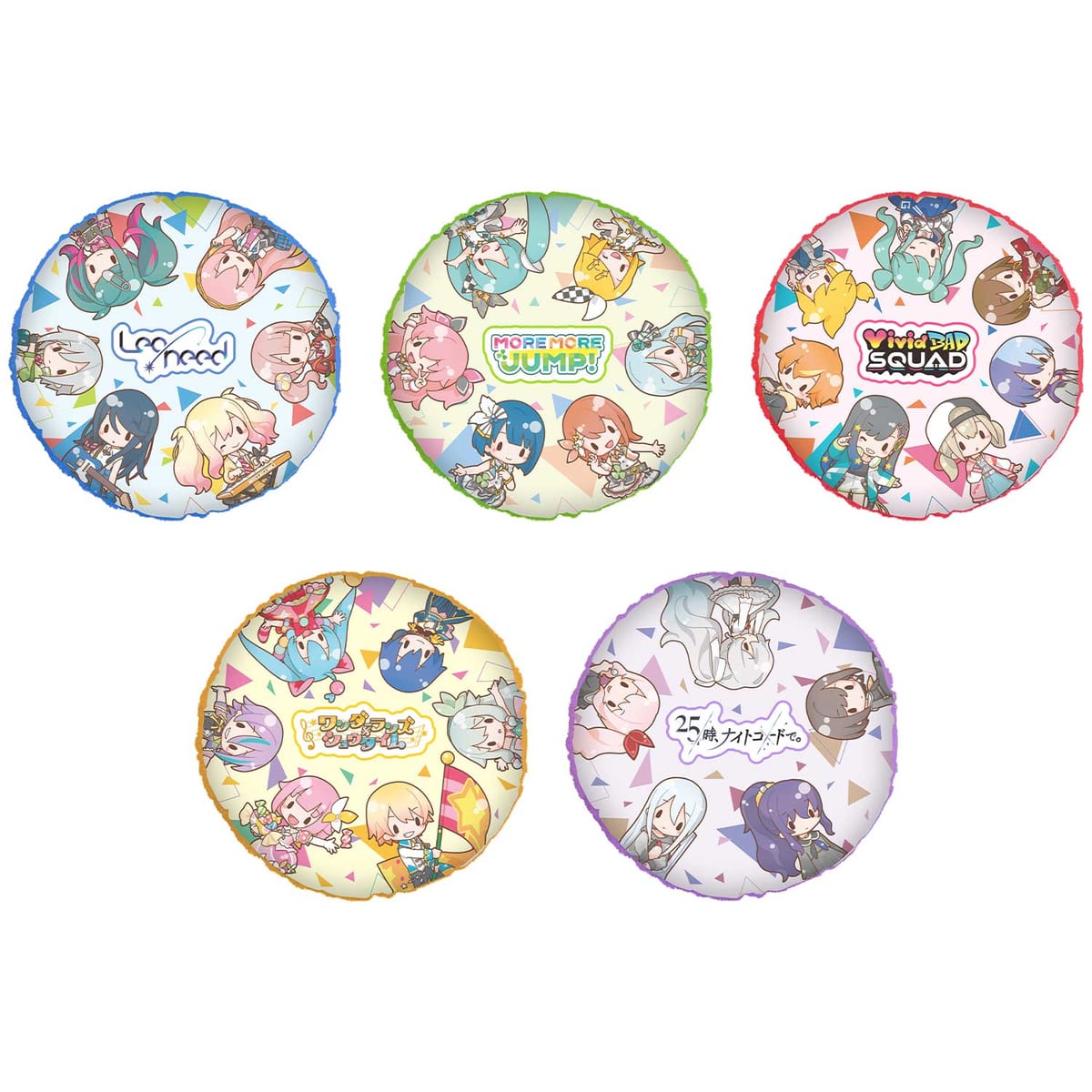 5つのユニット「Leo/need」「MORE MORE JUMP!」「Vivid BAD SQUAD」「ワンダーランズ×ショウタイム」「25時、ナイトコードで。」のメンバーたちの「ぷちぬいマスコット」が登場。