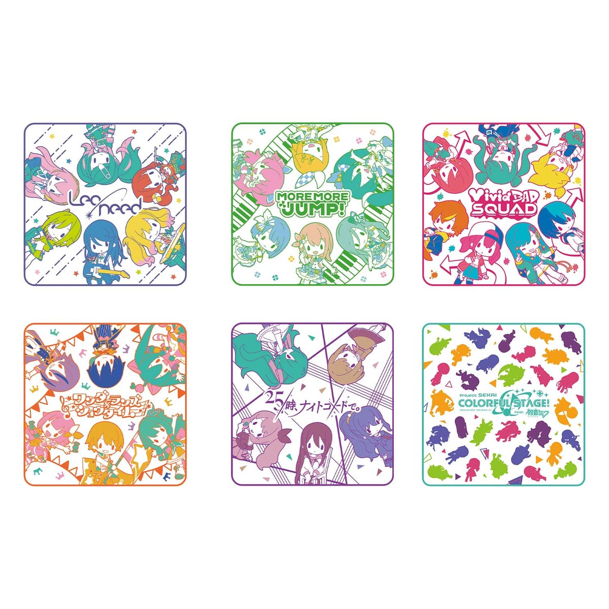 「Leo/need」「MORE MORE JUMP!」「Vivid BAD SQUAD」「ワンダーランズ×ショウタイム」「25時、ナイトコードで。」「プロジェクトセカイ カラフルステージ! feat. 初音ミク」の全6種が展開されます。