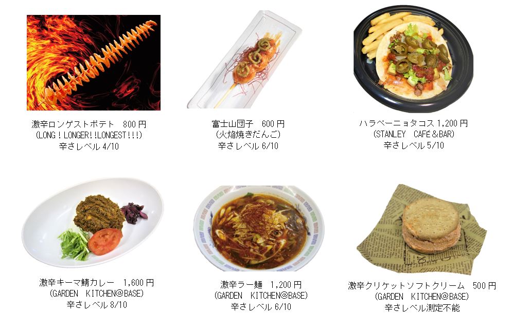 「FUJI-Q激辛祭り」のために各店が新たに開発した限定商品たち。