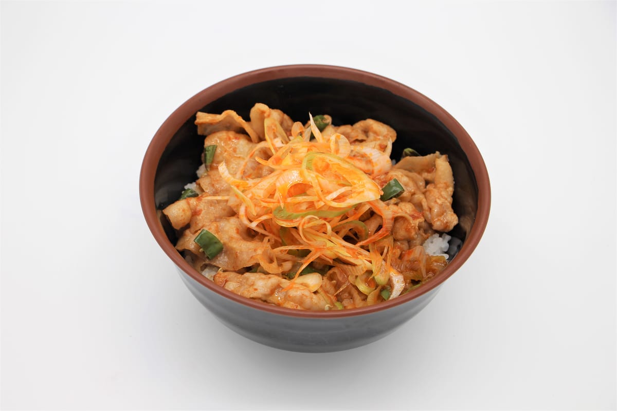 旨辛タレと豚肉が絡み合い食欲が爆進する、刻み唐辛子を加えたメニューです!