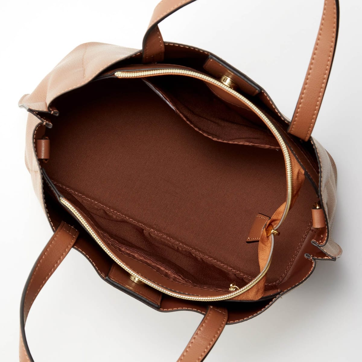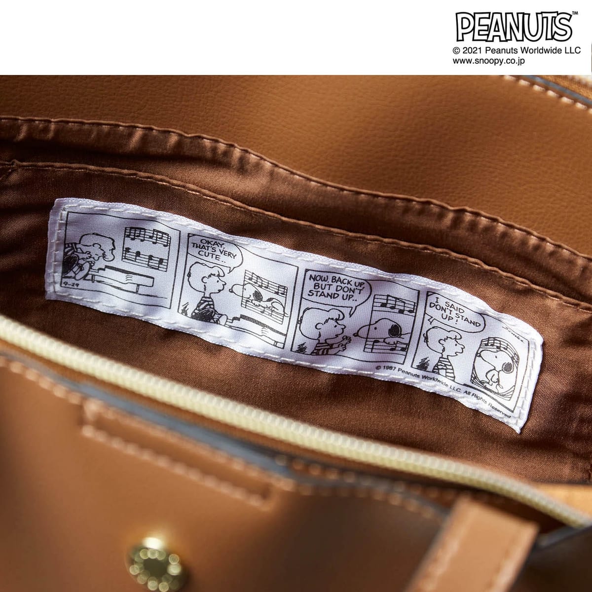 「スヌーピー」2WAYショルダーバッグ(レガートラルゴ) 内側に配したピーナッツ柄が愛らしいアクセント(ブラウン)