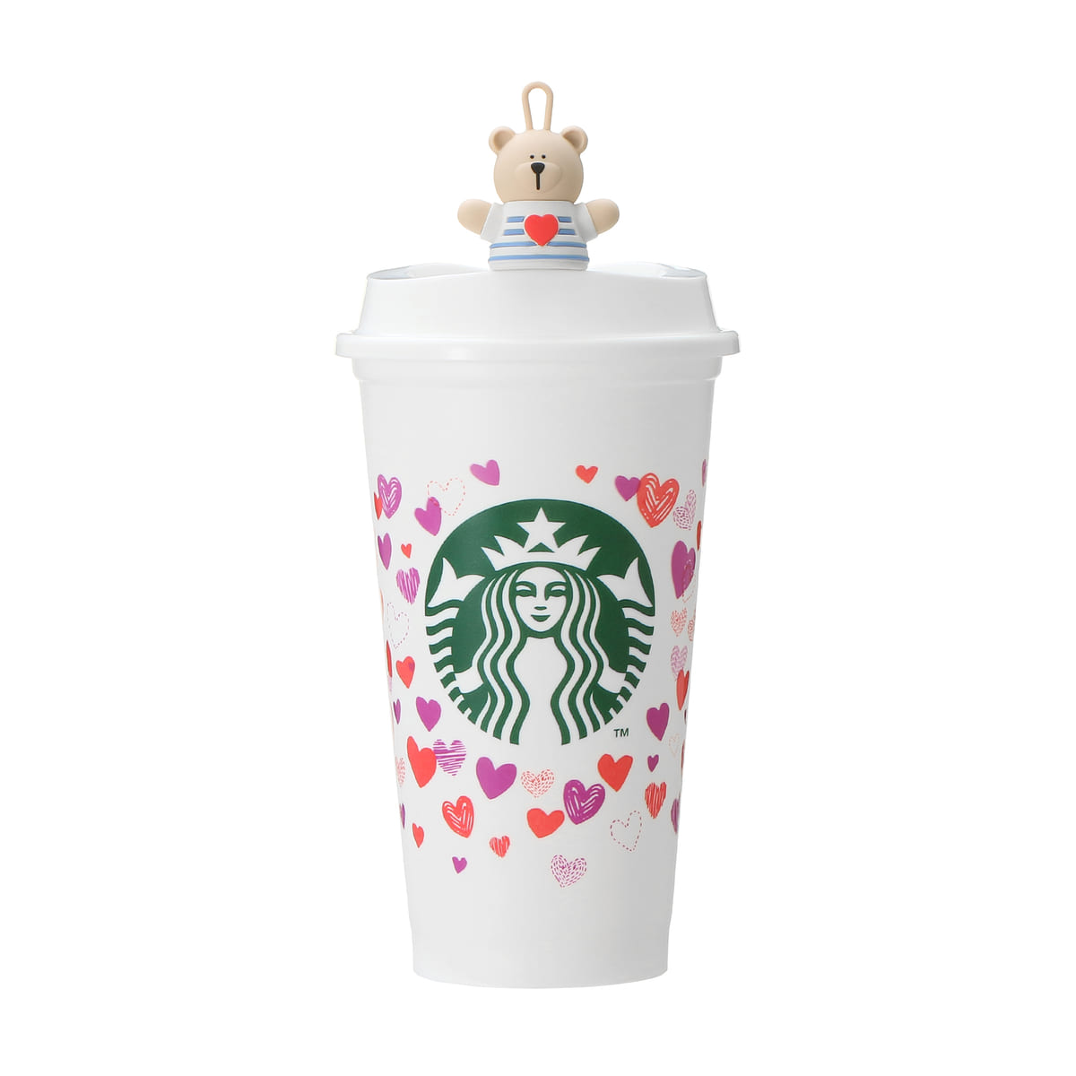 バレンタイン2022リユーザブルカップ専用ドリンクホールキャップベアリスタピンク/ホワイト