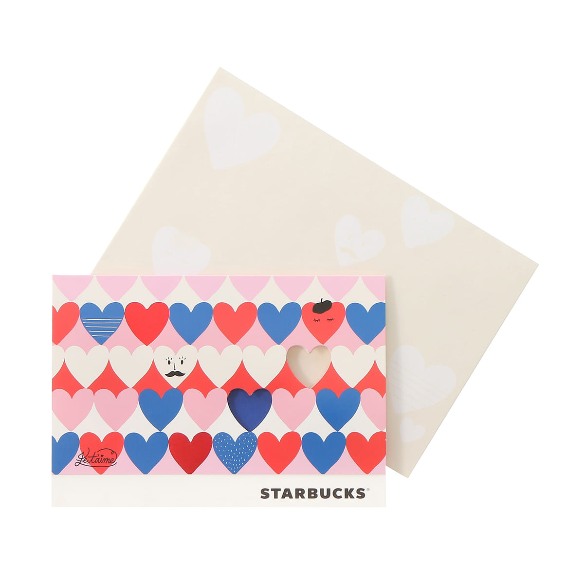 「バレンタイン2022ビバレッジカードトリコロールハート」は、トリコロールカラーで描かれたハートを並べたビバレッジカード。