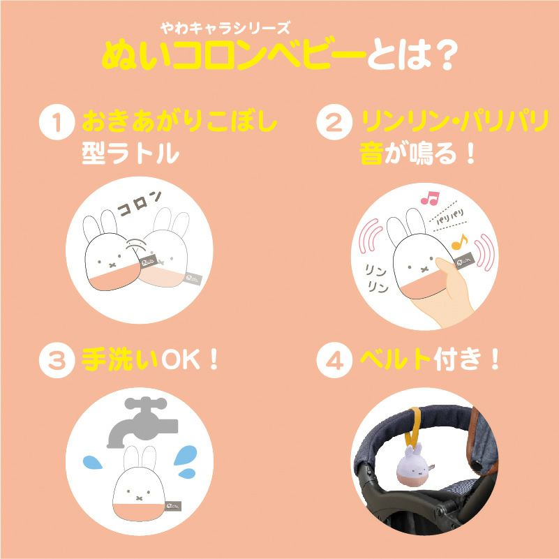 むにむに触感がたまらない、ぬいぐるみおきあがりこぼし「ぬいコロン」に「ミッフィー」モチーフのベビー向けグッズが登場。