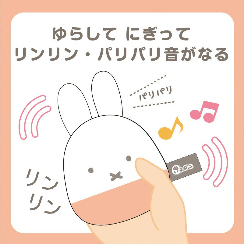 揺らすとリンリン、耳をさわるとパリパリと音が鳴り、遊びながらお子さんの目や耳の発達をサポートします。