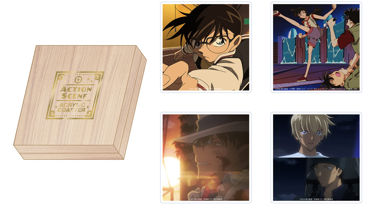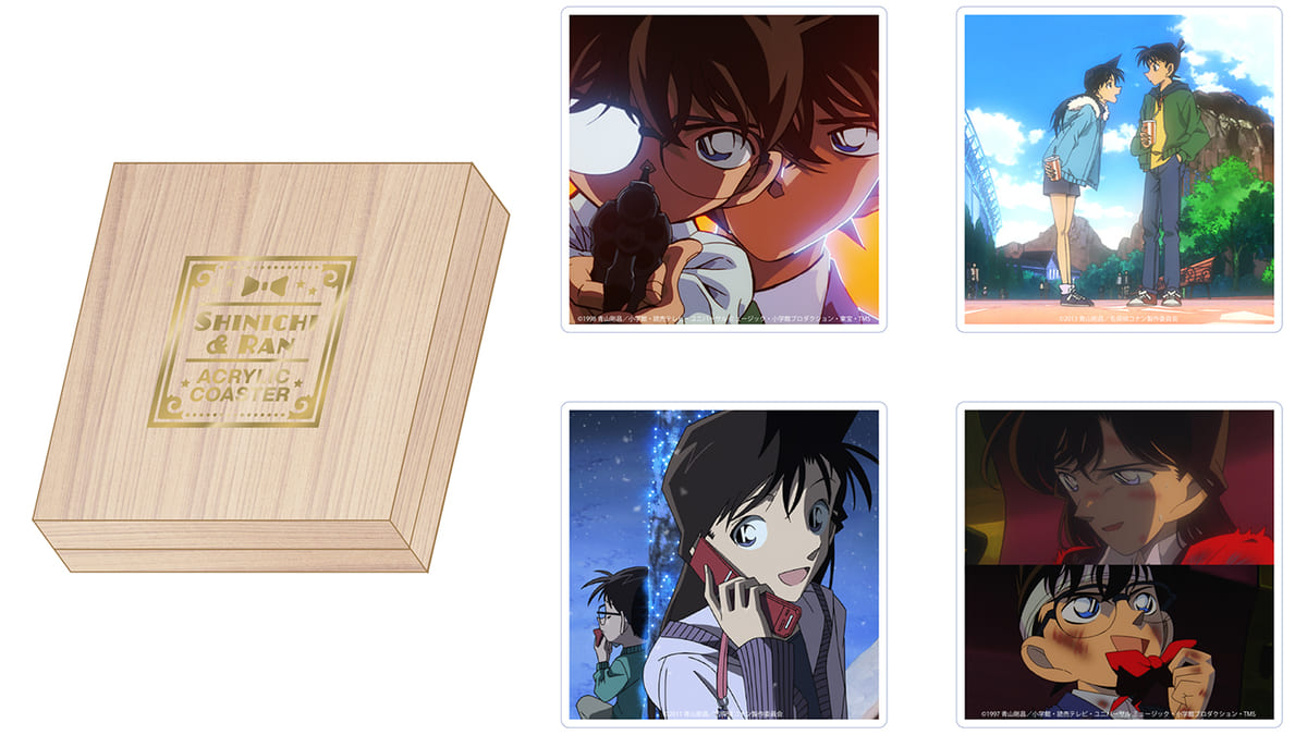 「工藤新一」と「毛利蘭」の名シーンを集めたアクリルコースターセット。