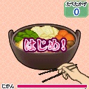 ボタンを操作して「おにぎり」「鍋」「うどん」などの回復フードをゲット!