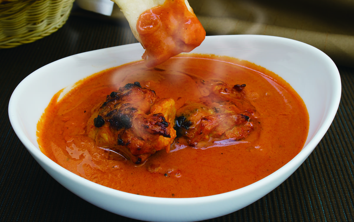 トマトベースに生クリームやカシューナッツなどを加えて作らる、濃厚なバターチキンカレー。
