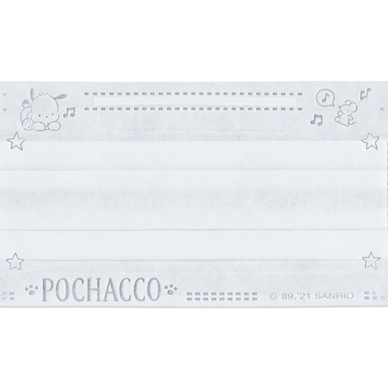 マスク本体はシンプルなホワイトですが、「ポチャッコ」のイラストやロゴがアクセントになっています☆