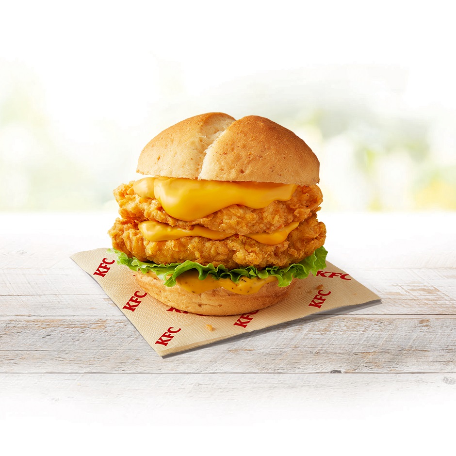 3種のチーズ(チェダー、クリーム、エメンタール)をブレンドしたチーズソースと、ガーリックとペッパーの風味がクセになるチーズソースを合わせ、ケンタッキーフライドチキン史上最盛の約50gを使用。
