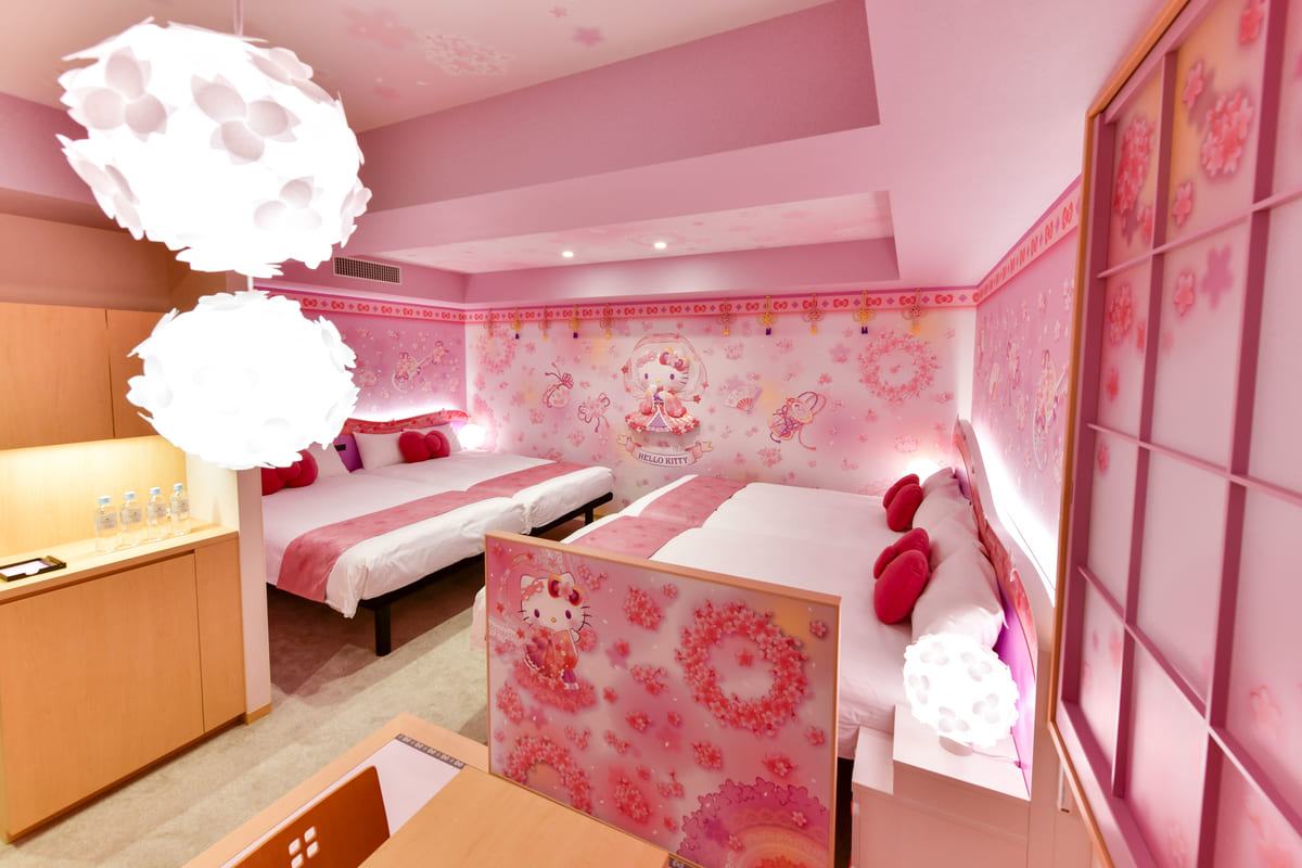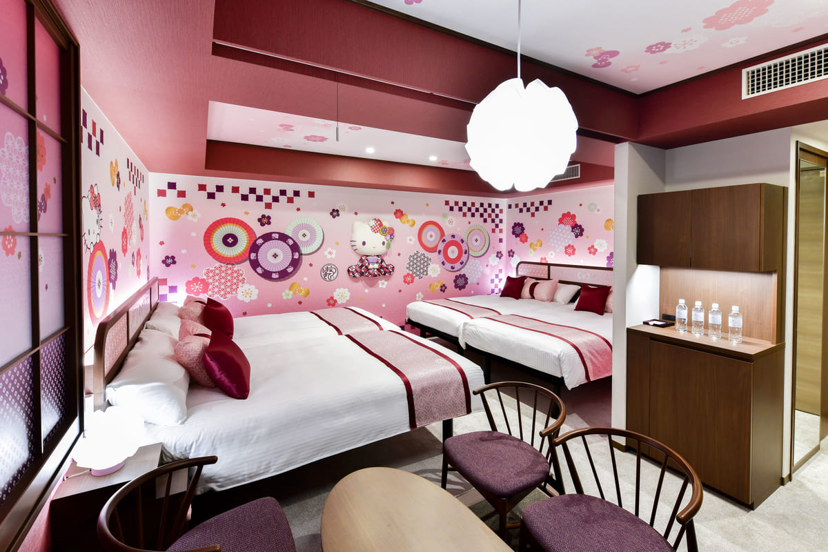 ハイカラな着物姿の「ハローキティ」が可愛い「和モダン」の2タイプの部屋から選ぶことができます。