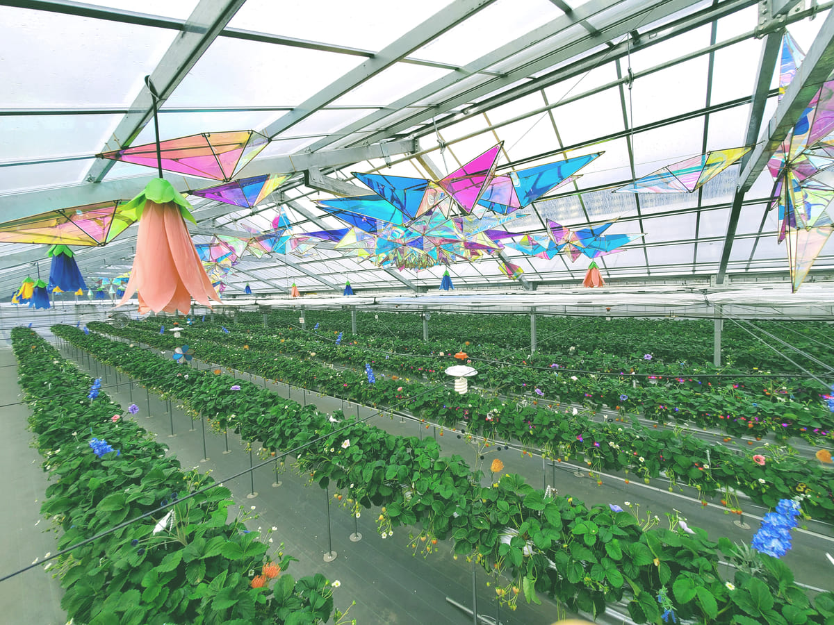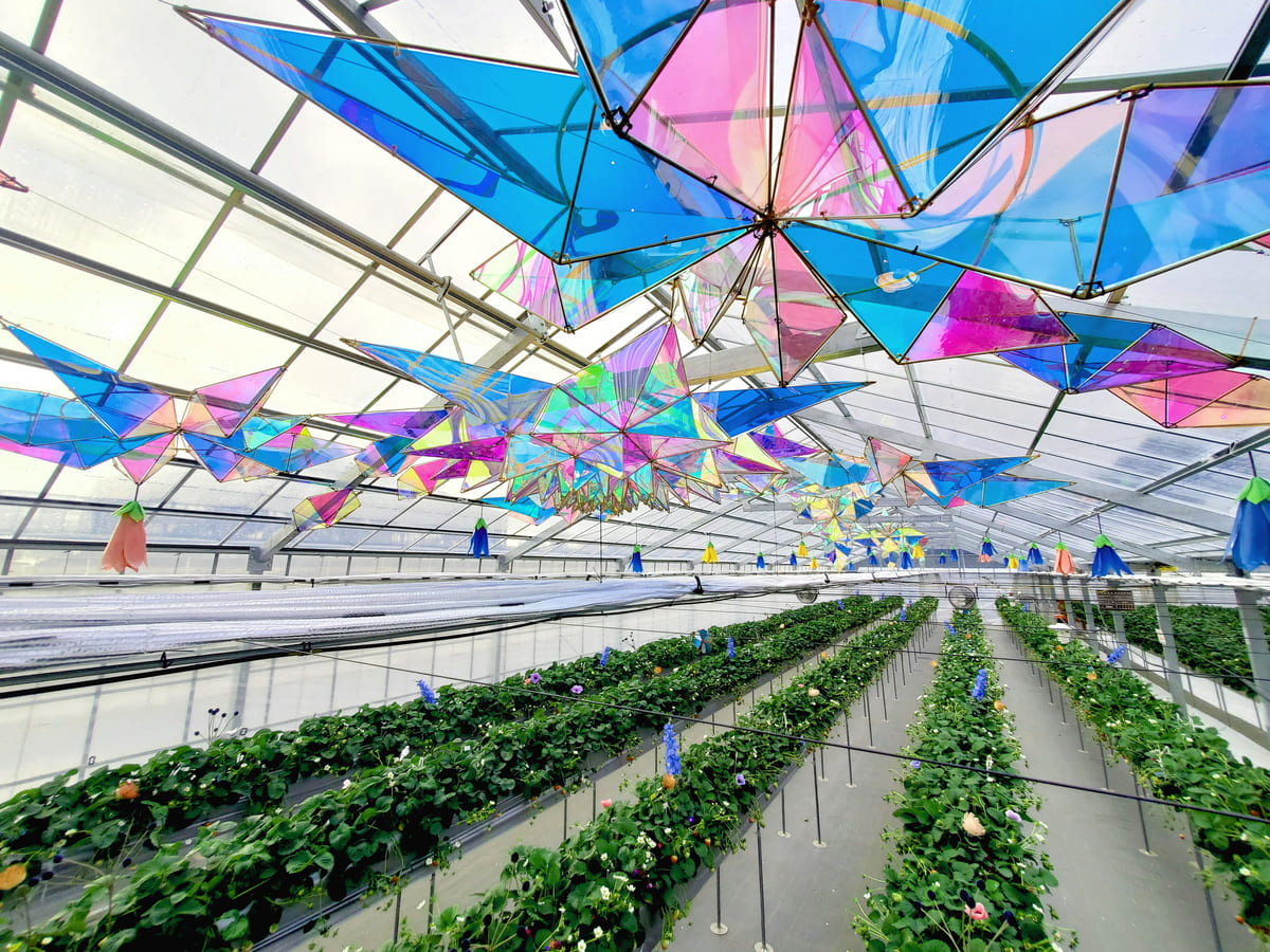 いちご狩りのエリアには、日本最大級のあかりのアート展を開催する「日本あかり博」とアート集団「ミラーボーラー」がコラボレーションした作品が登場。
