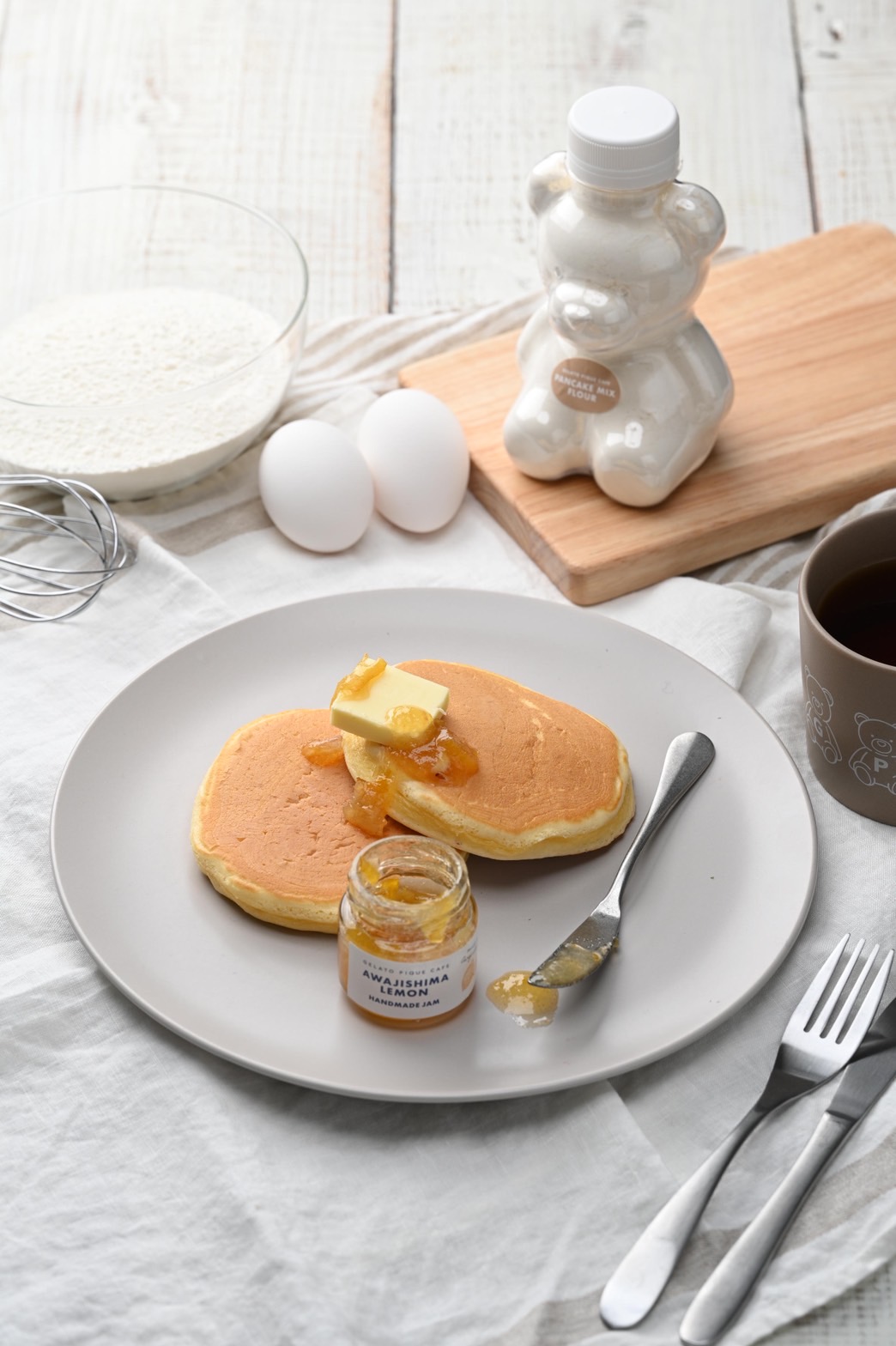 バターミルクの香り豊かな国産小麦のパンケーキミックス。