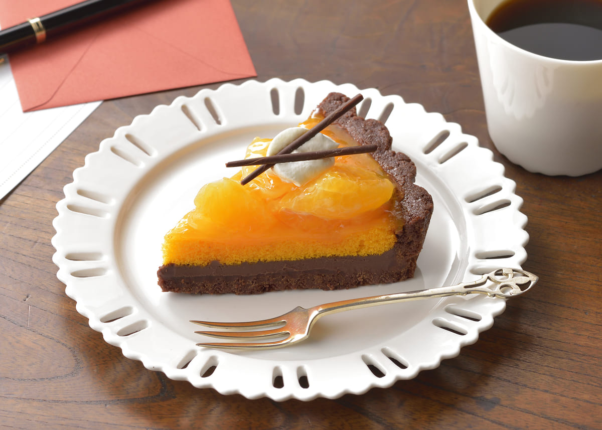 「デコポンのチョコタルト」は、季節の柑きつ「不知火(しらぬひ)」を使ったジャム&スポンジと、チョコガナッシュを重ねて、甘みが濃厚な「デコポン」を飾りつけたチョコレートタルトです。
